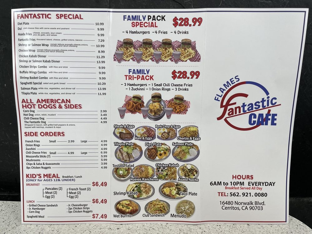 Fantastic Cafe is a must-try spot for burger enthusiasts in Cerritos, CA. With a diverse menu boasting options like swiss mushroom burgers with avocado, chicken taco salads, and chili cheese fries, there's something for everyone. Customers rave about the generous portion sizes, affordable prices, and friendly service. The spacious, family-friendly atmosphere makes it ideal for groups or solo diners looking for a quick bite. Whether you're in the mood for breakfast, lunch, or dinner, Fantastic Cafe has you covered. The convenient amenities, such as takeout, reservations, and delivery, add to the overall fantastic dining experience. Don't miss out on trying their signature dishes and experiencing the welcoming vibe of this hidden gem.